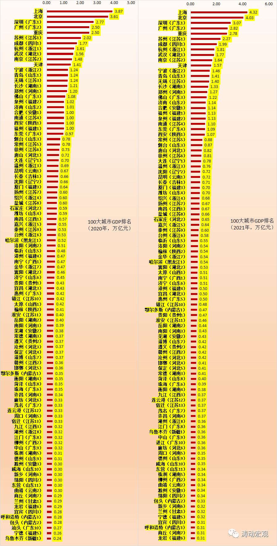 本文聚焦31個(gè)省級(jí)行政區(qū)和前100大城市的GDP排名。