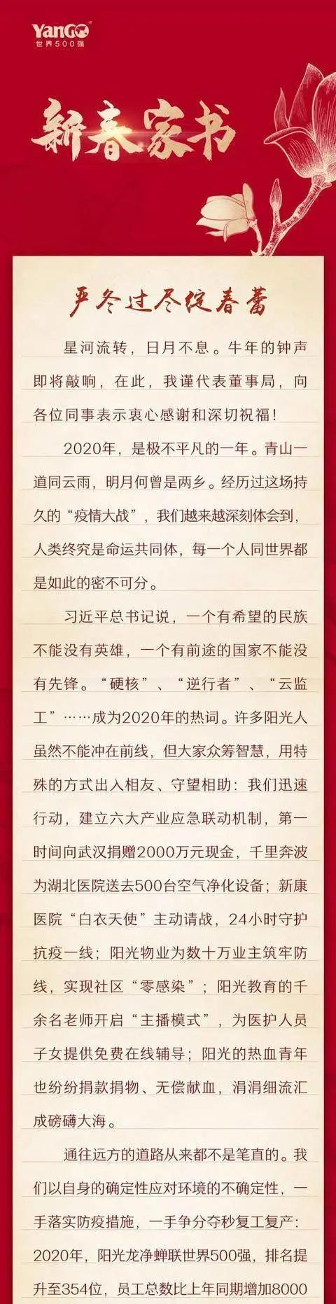 2021年初,林騰蛟在陽光城的官網上向員工群發了一封家書。
