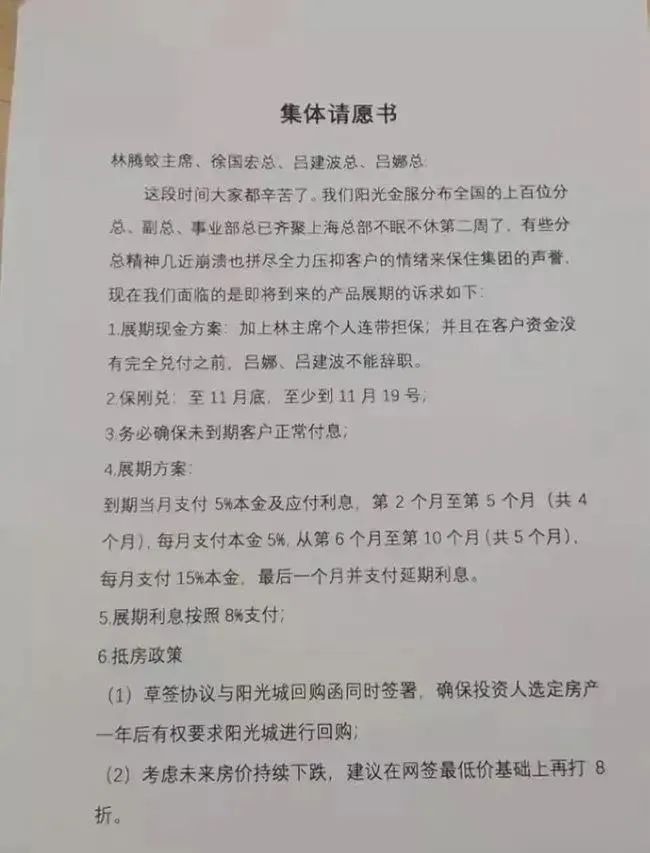 市場傳言,11月初林騰蛟曾遭陽光金服(員工理財平臺華冕財富母公司)的百名高管聯合“逼宮”,要求對理財產品展期兌付進行擔保和賠付。