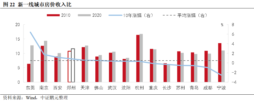 政策有效性:第一,地產只是當下病癥的切入點。從《通知》看出,政策在“人-金融-地產”三個方面發力,致力于平衡短期地產風險和長期發展。但同時也存在著幾個難題:第一,“限房價,竟地價”、預售制度和“兩集中”政策,對房企后續發展提出更高的要求,對于當前鄭州內眾多困難房企來說,化解“爛尾項目”是當前主要的目標。第二,居民收入難以帶動購房消費。第三,當地銀行的支持能力或相對有限。第四,地方政府財力不足。第五,此次“貨幣化安置”,與前兩輪存在差異。第二,留住人,是最終的政策方向。在土地財政的怪圈里,“土地-房地產-金融 -城鎮化”短期內可以快速提高經濟總量,但長期并不支持高房價下的高增長。一個城市的發展,最終需要依靠產業自身。留住人才的關鍵需要兩方面因素,一是產業發展,二是公共服務完善。對于鄭州,當前尤其要提高教育、創業就業方面的支持力度。