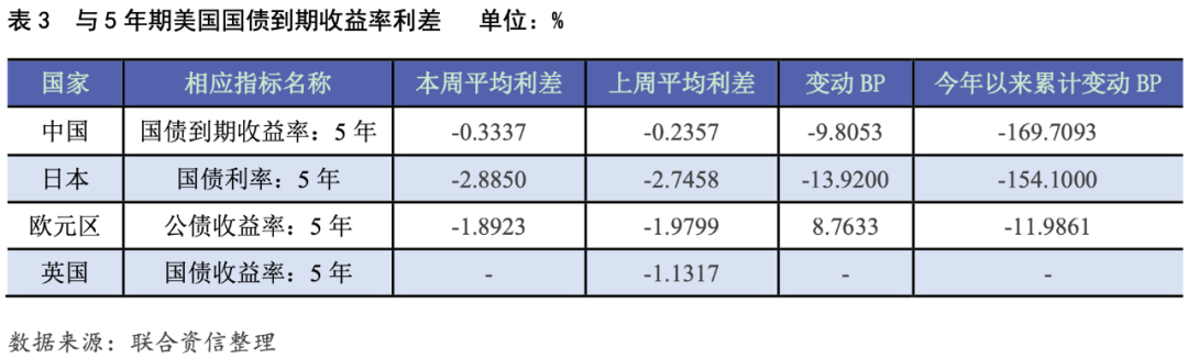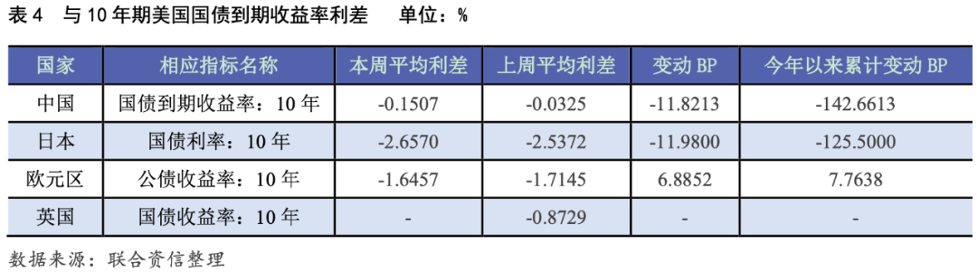 各期美債收益率全線上漲,主要經(jīng)濟(jì)體國債與美債收益率利差走勢(shì)不一