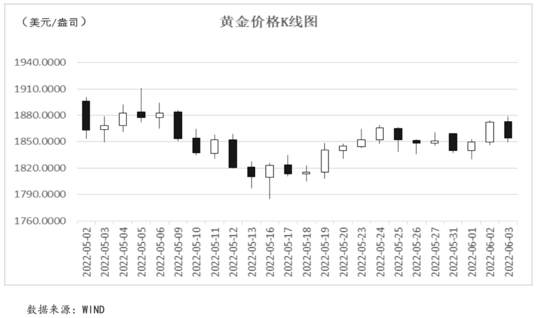 本周,黃金價(jià)格在美聯(lián)儲(chǔ)官員“鷹派”言論、美國經(jīng)濟(jì)增長前景和就業(yè)數(shù)據(jù)等多方因素的影響下呈現(xiàn)波動(dòng)走勢(shì)。周二,美聯(lián)儲(chǔ)官員的“鷹派”言論以及美聯(lián)儲(chǔ)主席鮑威爾與美國總統(tǒng)拜登就通脹問題的會(huì)面拉升長期美債收益率大幅走高,相應(yīng)削弱了黃金的吸引力。周四,美國“小非農(nóng)”數(shù)據(jù)(ADP就業(yè)數(shù)據(jù))不及預(yù)期,引發(fā)市場(chǎng)擔(dān)憂情緒,黃金價(jià)格出現(xiàn)上漲。周五,美國非農(nóng)數(shù)據(jù)超預(yù)期走好,顯示勞動(dòng)力市場(chǎng)依舊強(qiáng)勁,黃金價(jià)格受此承壓。截至本周五,COMEX黃金價(jià)格收于1853.90美元/盎司,周內(nèi)累計(jì)收跌0.30%。