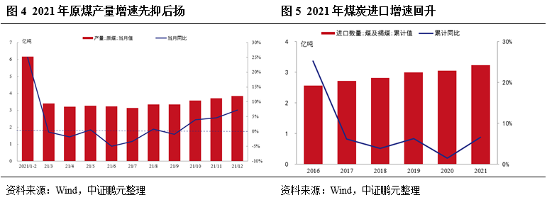 由于產(chǎn)地供給持續(xù)受限,2021年煤炭供給整體較為緊張,保供政策繼續(xù)護(hù)航,預(yù)計(jì)2022年原煤產(chǎn)量保持小幅增長