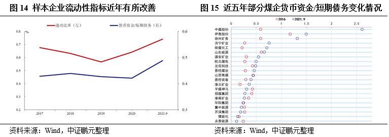 短期視角下:近年來樣本企業(yè)盈利能力明顯提升,再融資環(huán)境恢復(fù),預(yù)計(jì)行業(yè)景氣度維持,關(guān)注煤企的短期償債能力的變化