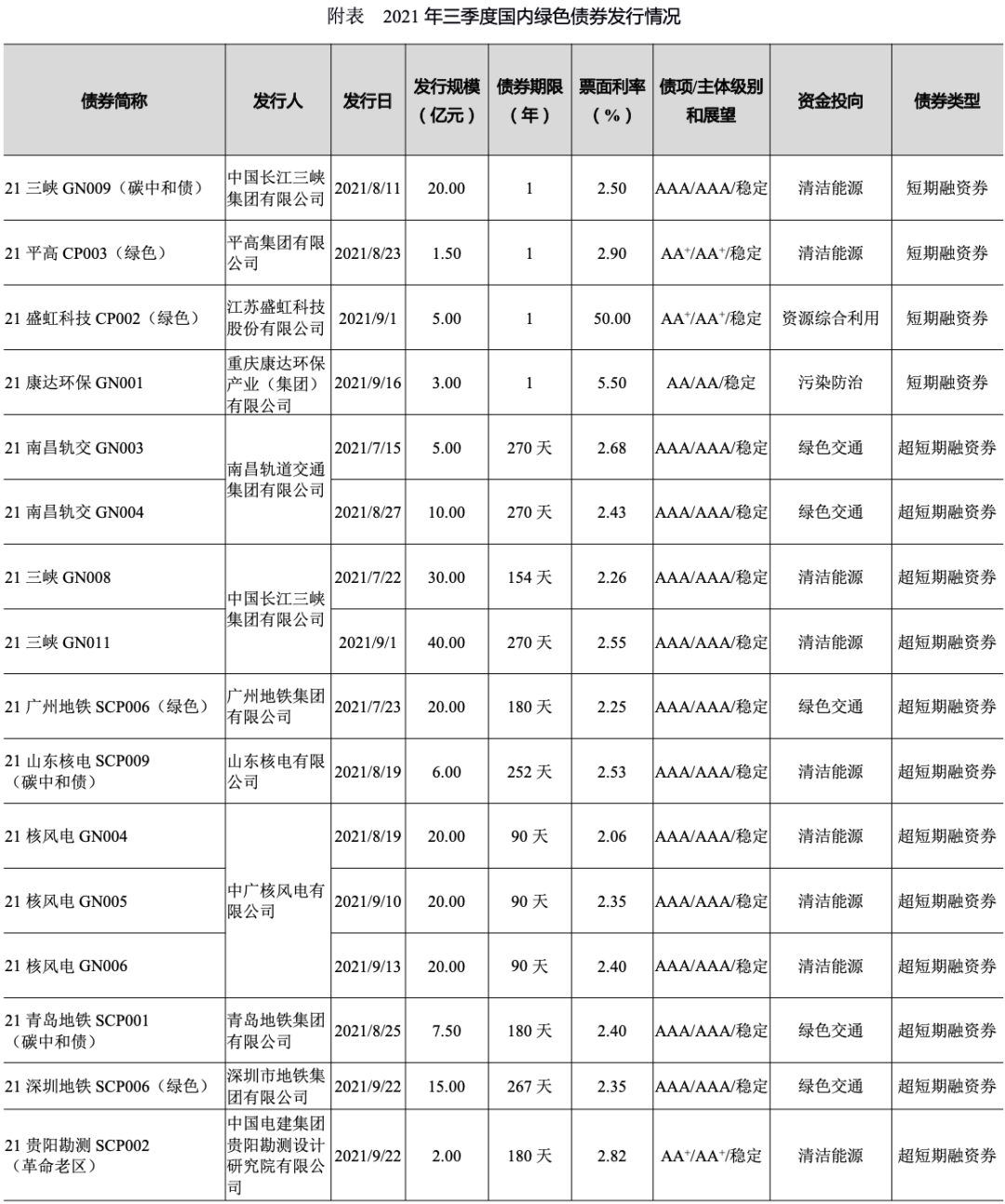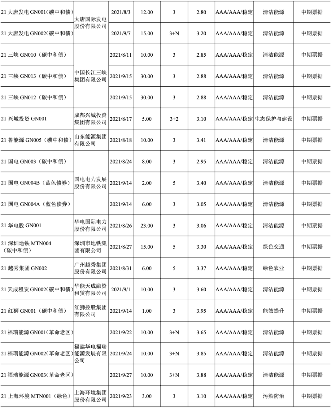 2021年8月31日,南方電網公司發行“南網融資租賃公司2021年度融資租賃第一期綠色資產支持商業票據(ABCP)”,發行規模16億元,票面利率2.58%,發行期限120天,募集資金將用于風力和光伏發電項目。該債券系全國首只公募碳中和資產支持商業票據,據綠色評估機構測算,本期票據募集資金用于碳減排項目,將實現年減碳排量114.47萬噸。(摘自中國新聞網,2021年8月31日)