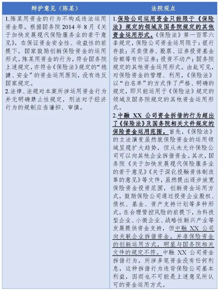 在“胡某某等案”中,法院判定中融XX公司向關聯企業資金拆借的行為超出了《保險法》及國務院相關文件規定的保險資金運用范圍。