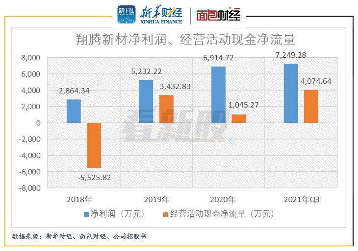 圖2:翔騰新材凈利潤、經營活動現金凈流量