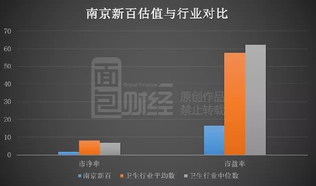 截止2018年7月4日收盤,南京新百總市值146億,市凈率1.8倍,市盈率16.4倍。而統(tǒng)計(jì)數(shù)據(jù)顯示,當(dāng)前A股醫(yī)療衛(wèi)生行業(yè)公司,市凈率中位數(shù)為6.96倍,平均數(shù)為8.1倍;市盈率中位數(shù)為62.4倍,平均數(shù)為57.8倍。