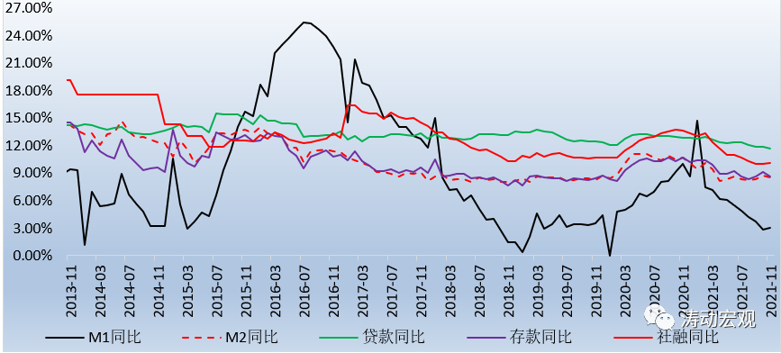 2、今年11月當月,M1同比增速達到3%,環(huán)比上升0.20個百分點,這是自今年2月以來M1同比增速首次出現環(huán)比上升,這表明企業(yè)的資金面實際上是相對充裕的。
