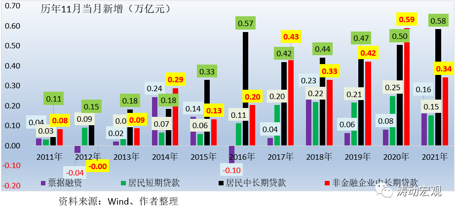 2、與此同時,受按揭政策略有松動影響,11月居民中長期貸款新增0.58萬億,同比多增0.08萬億,連續(xù)兩個月呈現企穩(wěn)跡象。