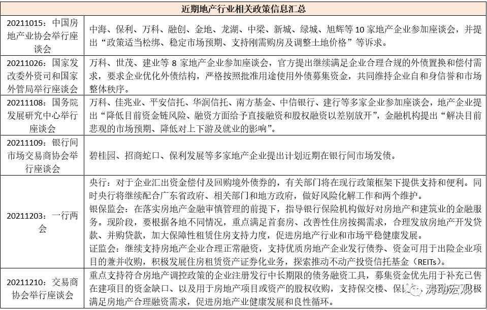2、今年10-11月,政策層面在個人住房按揭、企業(yè)發(fā)債以及地產企業(yè)的開發(fā)貸、并購貸等方面的約束有所放開。