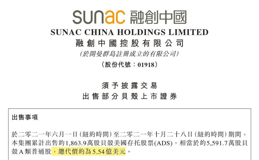 融創(chuàng)的“輸血”動(dòng)作還不止于此,更早的10月底,融創(chuàng)中國(guó)公告披露,于今年6月1日(紐約時(shí)間)至10月28日(紐約時(shí)間)期間,累計(jì)出售約1863.9萬(wàn)股貝殼美國(guó)存托股票(ADS),相當(dāng)于約5591.7萬(wàn)股貝殼A類(lèi)普通股,總代價(jià)約為5.54億美元,折合人民幣約為35.4億元。