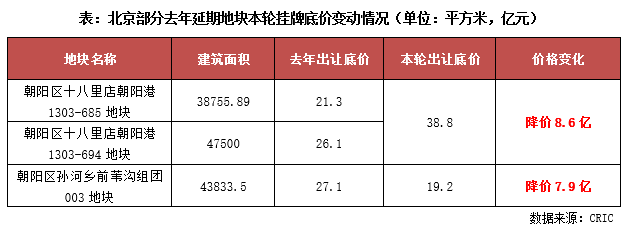 去年北京第二輪集中供地中,出現大量延期出讓地塊,其中有部分地塊在本輪重新掛牌,且價格有大幅度下調: