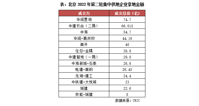 北京由于土地總價較高,房企以聯合體形式拿地較為常見,本輪土拍成交的14宗含宅用地中,有7宗被聯合體競得,占總幅數的一半,此外國企央企仍然是主要拿地力量。
