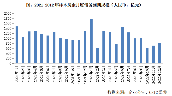 另一方面,房企迎來債務集中到期高峰,根據克而瑞監測的98家樣本房企數據,2021年與2022年債務到期規模分別折合人民幣約13.8萬億元和12.6萬億元,為近十年來的小高峰;其中,2022年1月到期債務規模約1793億元,為近期月度小高峰。同時,近期房企債務展期、違約等事件頻出,房企的現金流動性壓力可見一斑。