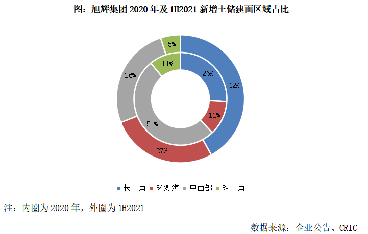 在此窗口期下,房企通過戰略“瘦身”,得以趁機調整布局,有的放矢,推進區域深耕戰略,蓄勢待發迎接下一輪投拓。例如旭輝集團,一直以來堅持區域深耕戰略,多次調整優化組織架構,控制管理半徑,以提高效能、更好地配合區域深耕落地。2021年上半年,旭輝顯著增加了長三角及環渤海的投資力度,新增土地建筑面積占比分別較2020年全提升16和15個百分點。