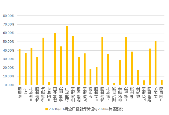 同時(shí),“兩集中”政策帶來了土地溢價(jià)率的提升對于對利潤率要求嚴(yán)格的開發(fā)商來說,擴(kuò)充土儲面臨新的障礙。如,世茂集團(tuán)盡管在年初提出“在后續(xù)集中供地上世茂還是有拿地的優(yōu)勢,集團(tuán)也預(yù)留了一些資金積極參與”,但前六個(gè)月其拿地金額僅為158.3億元,僅占2020年銷售額的5.27%。