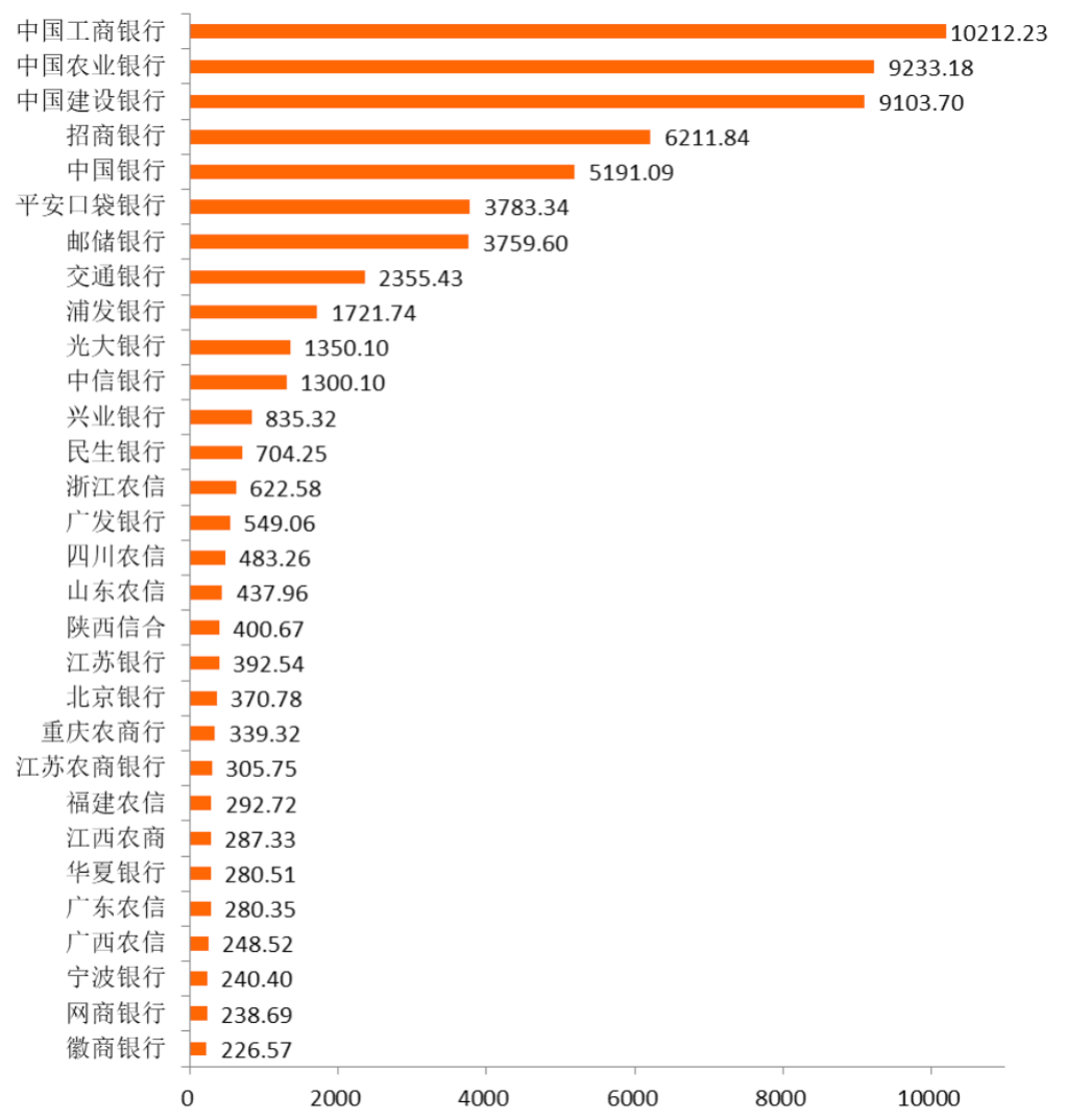 從月活躍用戶數來看,根據第三方權威數據分析機構——易觀Analysys發布的數據,截至2021年10月,MAU排名前30名主要以國有大行、全國性股份制銀行為主,其中前3甲均為國有大行,分別為工商銀行1.02億、農業銀行0.92億、建設銀行0.91億。同時,拼搶“零售之王”的招商銀行與平安銀行,MAU分別排在第4位與第6位,超越了部分股份制銀行。
