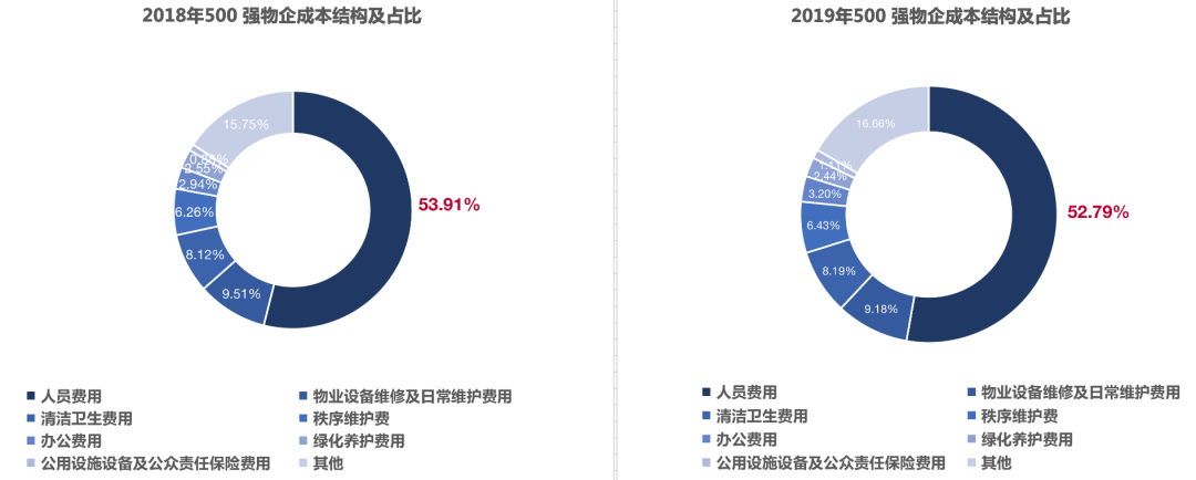 2018-2019 年度500 強物企成本結構及占比變化