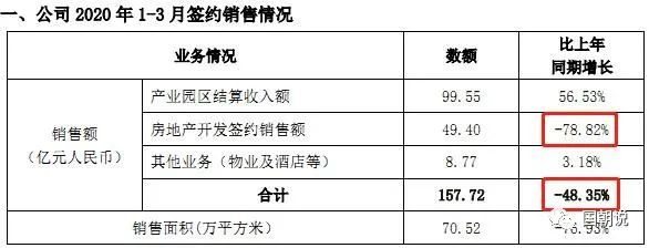 實際上華夏幸福資金問題早就是久病纏身,據華夏幸福2020年一季報顯示,截止2020年3月底華夏幸福短期債務(短債+一年內有息負債)達到745.72億元,相較2019年底猛增了140多億元,而貨幣資金只有464.35億元,若考慮到受限資金,現金已難以覆蓋短期債務,資金鏈緊張可見一斑。與此同時,華夏幸福對外披露2020年一季度銷售業績,報告期內實現銷售收入157.72億元,同比下降48.35%。
