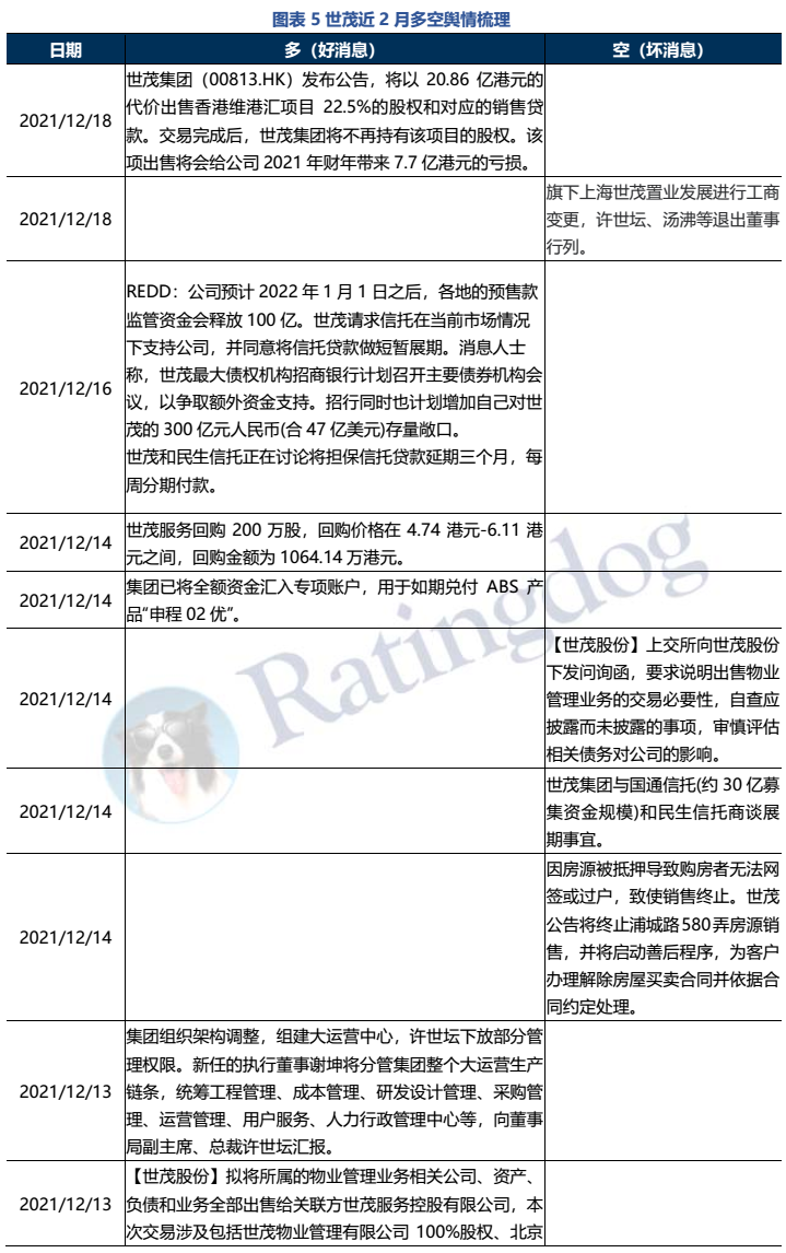 時代中國12月7日對年內所有到期債券及ABS備償完畢,美元債價格對此產生積極反應,但隨后境內外債券又出現下跌,市場猜測為公募機構換倉??紤]到公司舊改業務涉及較多表外融資,透明度較低,不排除存在非公開的非標融資輿情的可能。