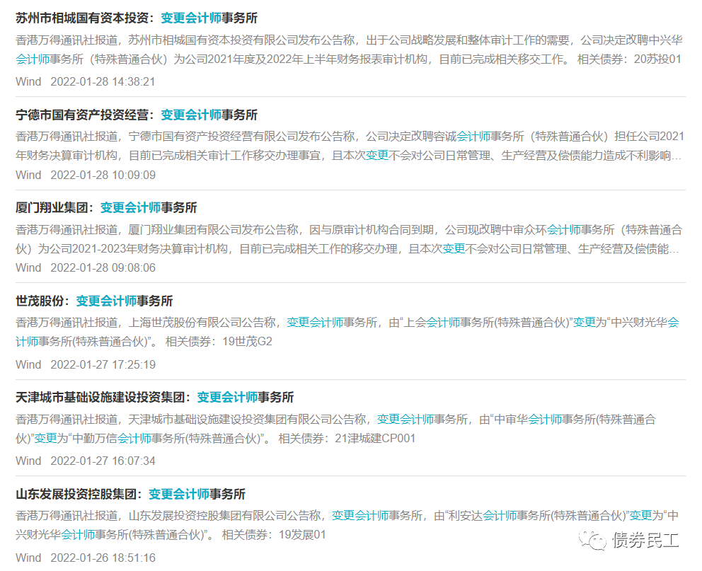 這是債券發行人近期披露的擬變更會計師事務所的部分公告: