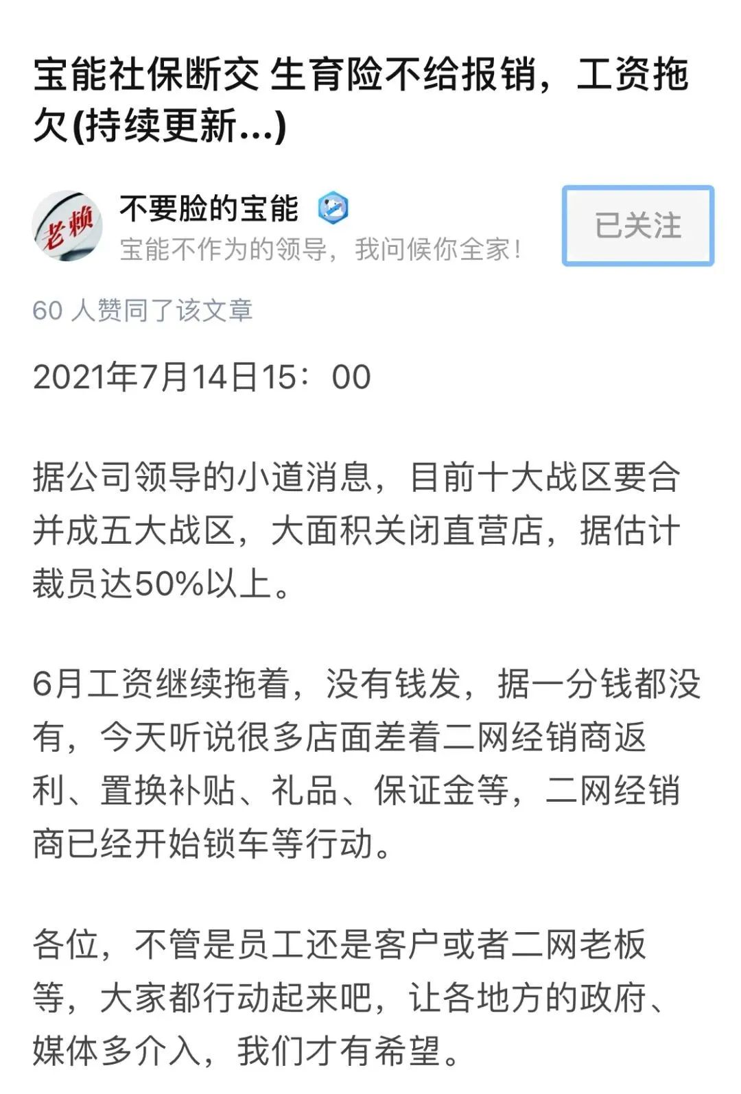 6月份的時候,寶能旗下新能源汽車獲廣州國企120億戰投,是件鼓舞人心的事。沒想到,有汽車媒體報道后,文章評論區齊刷刷都是來討薪的。