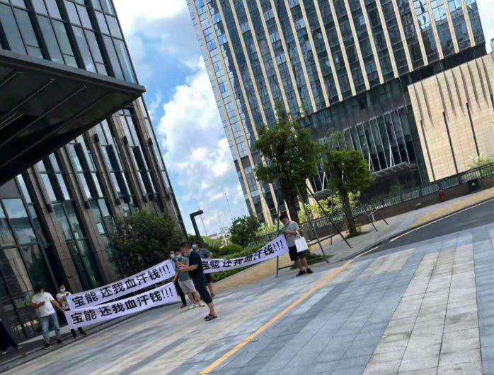 在曠日持久的討薪戰中,寶能的員工以及被欠債的供應商們,變得很“油菜花”。眼看線上攻效果不明顯,他們適時轉到線下,拉橫幅那都是常規操作。