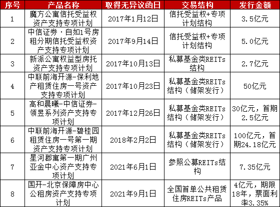 已發(fā)行租房ABS、REITs產(chǎn)品一覽表