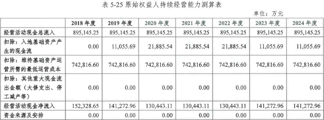 第一種操作是只將部分收入納入專項計劃,未納入專項計劃的收入可以用來覆蓋一部分成本。以“開源-北京自來水供水收費收益權2018年第一期資產支持專項計劃”為例,基礎資產系指原始權益人在專項計劃設立日轉讓給管理人的、因進行自來水供水業務而享有的特定期間內的供水收費收益權。特定期間系指2019年的7月1日(含)至7月31日(含)、2020年、2021年、2022年的7月1日(含)至8月31日(含)、2023年、2024年的7月1日(含)至7月31日(含)的期間。但如果特定期間內某一日出現水費收款賬戶歸集的基礎資產回收款達到或超出該特定期間必備金額(等于每個特定期間結束后的下個兌付日應付當期資產支持證券本金和預期收益之和的1.30 倍(包括專項計劃費用))的情形,則該特定期間于該日提前結束。原始權益人持續經營能力測算如下: