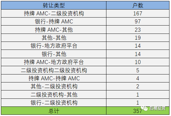 按轉(zhuǎn)讓及受讓主體類型分(只考慮有明確債權(quán)金額部分):