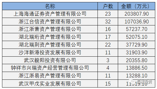 從阿里拍賣平臺(tái)中篩選出湖北地區(qū)債權(quán)(超過1000萬)成交記錄,總成交戶數(shù)97戶,成交債權(quán)總本金超25億,總成交價(jià)11.1億元。具體情況如下表所示: