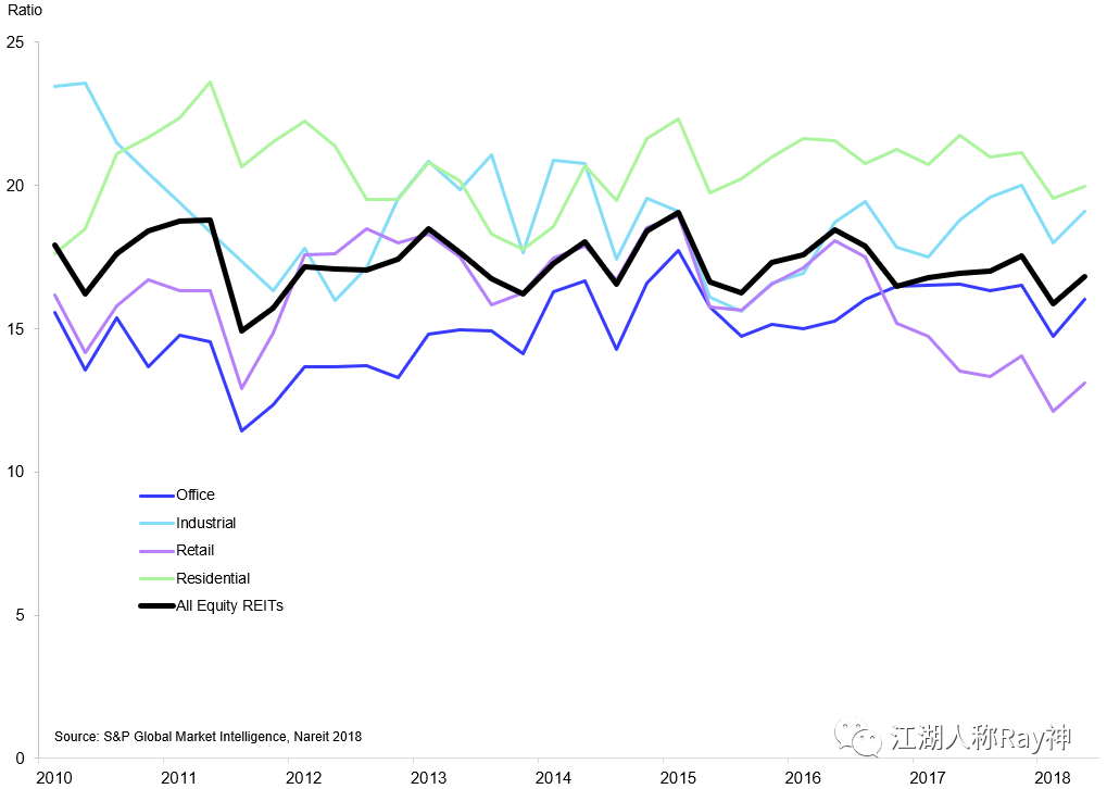 圖4:北美REITs市場的平均P/FFO