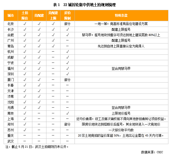 盡管大部分城市都采取了雙重限價等措施,但結合已完成首輪土拍城市表現來看,仍有不少城市出現了競拍高熱現象。因此,在“三穩”要求進一步落實的背景下,重慶、杭州、無錫等首輪土拍高熱城市極有可能會在二三批次供地時對出讓規則進行升級,以穩定市場預期。