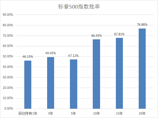通過圖1、圖2的對比,標普500指數是一個非常優質的股票指數。如果投資時間在十年以上,可以重倉配置。投資的策略可以是買入并持有。但是對于A股而言,由于長期策略的勝率并不很高,可能買入并持有的策略并不是很適合A股市場。但無論如何,投資期限越長,配置更多的股票資產是一致的。