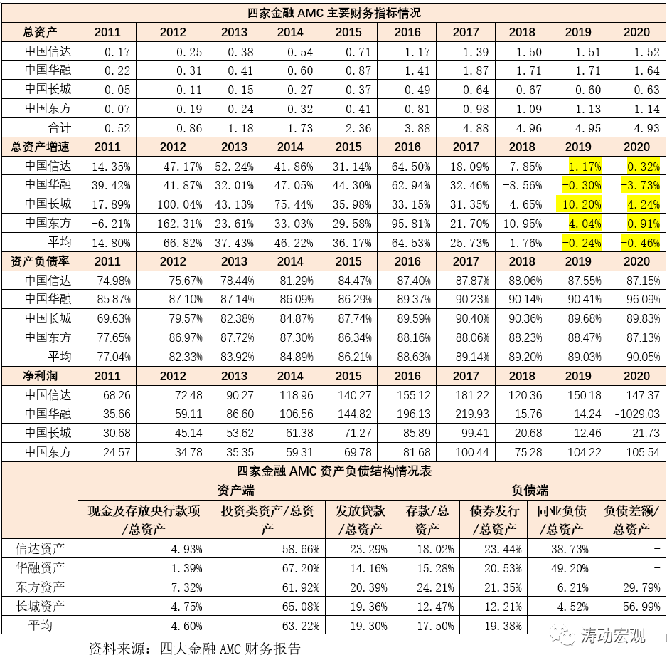 3、鑒于銀河資產(chǎn)成立時(shí)間不長,這里主要分析四家金融AMC: