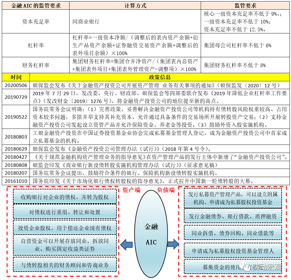 1、金融AMC與金融AIC的本質(zhì)都是為了債轉(zhuǎn)股和化解風(fēng)險(xiǎn),也即降杠桿。