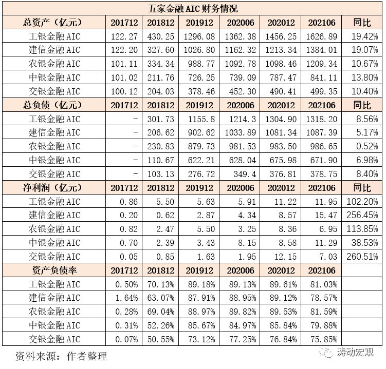 2、從創(chuàng)利能力來看,金融AIC的經(jīng)營狀況良好。今年上半年,工銀金融AIC、建信金融AIC、農(nóng)銀金融AIC、中銀金融AIC以及交銀金融AIC的凈利潤同比增速分別高達(dá)102.20%、256.45%、113.85%、38.53%和260.51%。