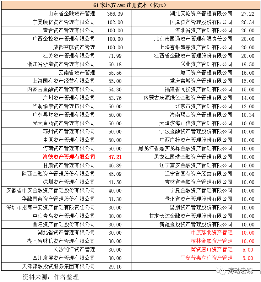 (1)2015年2月28日成立的吉林省金融資產(chǎn)管理因大股東于2020年4月被最高院判決解散。不過2021年2月吉林省盛融資產(chǎn)管理有限公司獲批從事金融企業(yè)不良資產(chǎn)批量收購業(yè)務(wù),算是填補(bǔ)了吉林省地方AMC的空白。