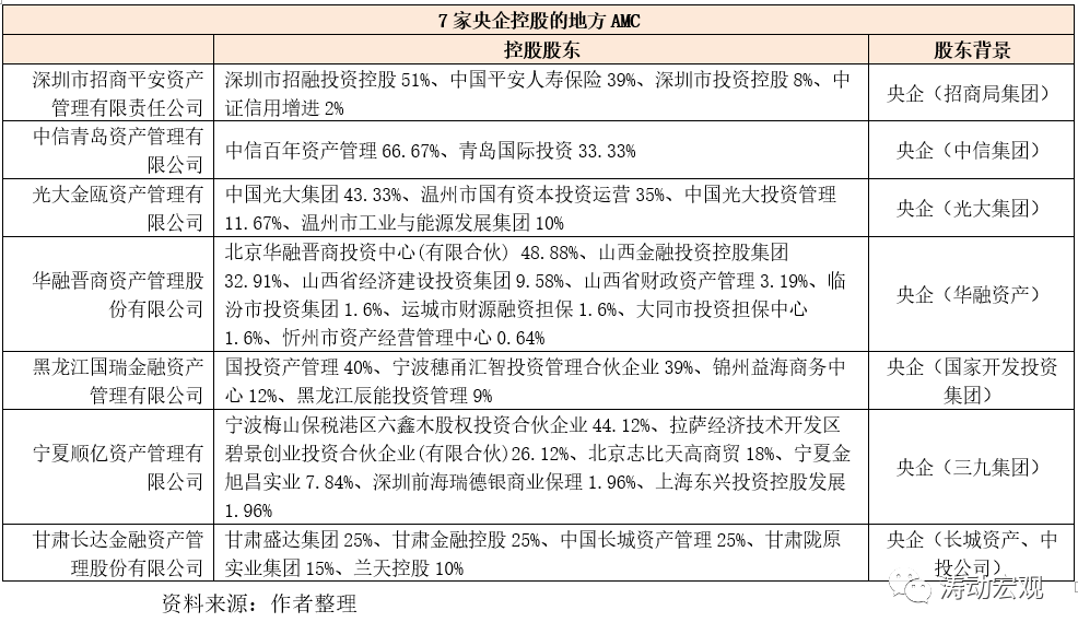 1、央企控股的地方AMC有7家,分別為招商平安資產(chǎn)管理(招商局集團(tuán))、中信青島資產(chǎn)管理(中信集團(tuán))、光大金甌資產(chǎn)管理(光大集團(tuán))、華融晉商資產(chǎn)管理(華融資產(chǎn))、黑龍江國瑞金融資產(chǎn)管理(國家開發(fā)投資集團(tuán))、寧夏順億資產(chǎn)管理(三九集團(tuán))、甘肅長達(dá)金融資產(chǎn)管理(長城資產(chǎn))。