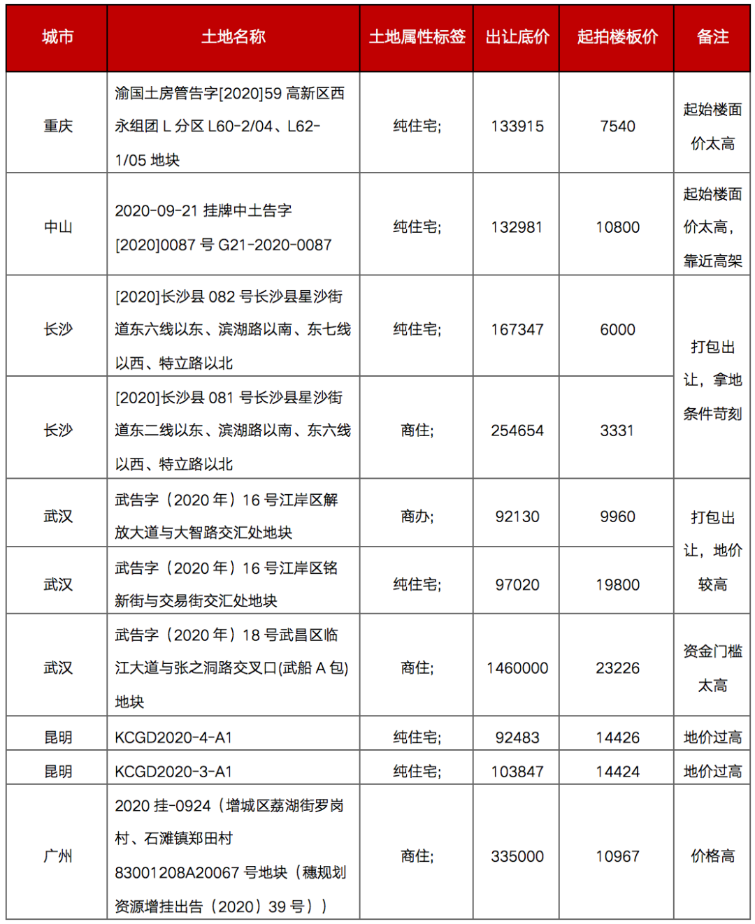 重點地塊成交價格明顯走低