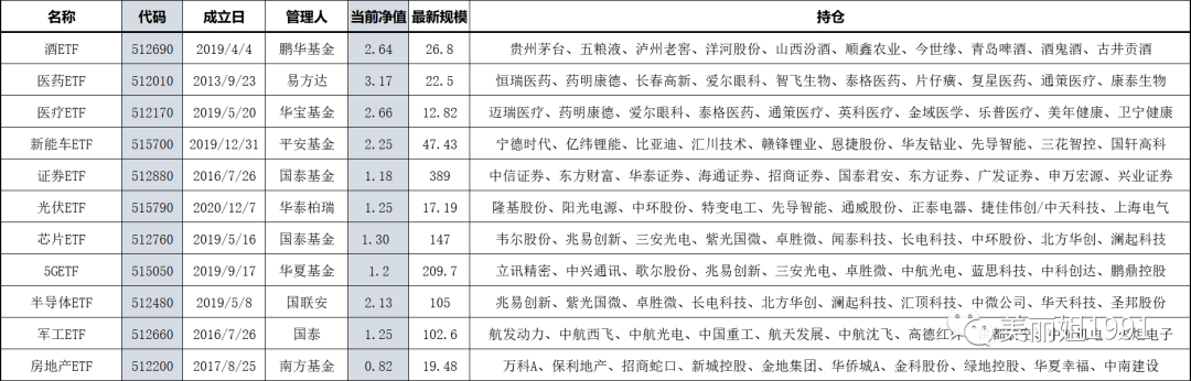 每只板塊基金的重點持倉,我也都羅列出來,我知道很多股民連自己收到的票是哪個行業都不大清楚,可以在里面找找,認認家門。