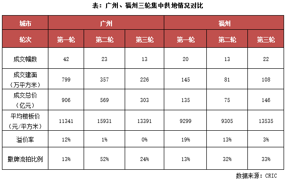 12月初,廣州和福州也迎來了第三輪集中土拍。與此前參拍城市相同,為了吸引房企參拍,兩城對土地出讓規則均進行了調整,如廣州多宗地起拍價打折、福州提升溢價地塊商品住宅限價漲幅等,以給予房企更多利潤空間。那么,兩城最后一輪土拍表現究竟如何?較上一輪又發生怎樣的變化?