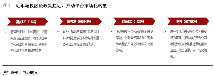 城投融資政策收緊,市場化轉(zhuǎn)型的需求不斷加強(qiáng)。自2014年43號文以來,城投監(jiān)管政策一直強(qiáng)調(diào)劃清政府與企業(yè)的界限,剝離城投公司的政府融資職能,積極推動其市場化轉(zhuǎn)型。其后陸續(xù)出臺的 42號文、225號文、50號文等,都在強(qiáng)調(diào)積極推動城投公司轉(zhuǎn)型。在執(zhí)行層面,2015年起已陸續(xù)有城投公司剝離平臺屬性較強(qiáng)的資產(chǎn)向產(chǎn)控集團(tuán)轉(zhuǎn)型,各級政府也開始大力發(fā)展產(chǎn)控、金控平臺;此外依托產(chǎn)業(yè)園區(qū)的經(jīng)營屬性,開拓園區(qū)綜合運(yùn)營服務(wù)業(yè)務(wù),亦成為傳統(tǒng)城投公司轉(zhuǎn)型的一個(gè)方向。