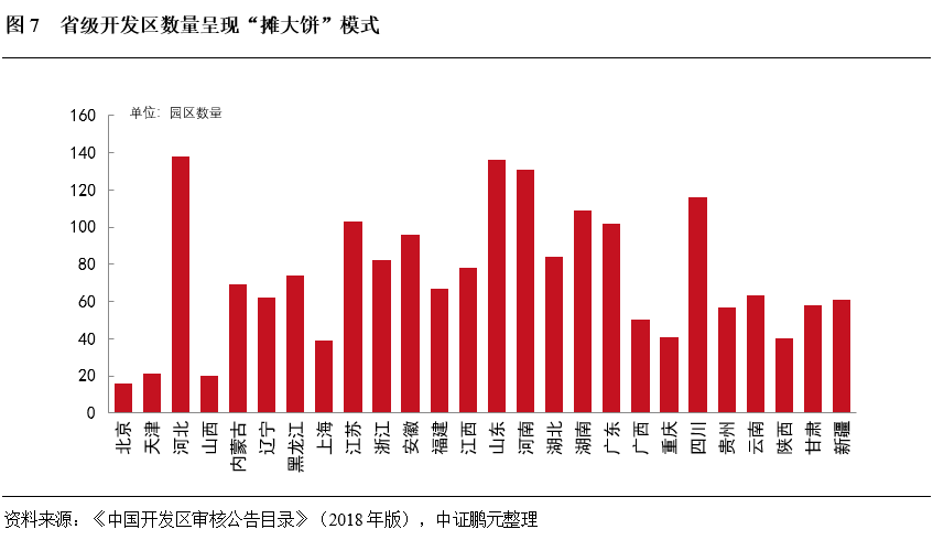 產(chǎn)業(yè)園區(qū)重?cái)?shù)輕質(zhì),同質(zhì)化嚴(yán)重,國家級開發(fā)區(qū)逐步形成產(chǎn)業(yè)集聚,省級開發(fā)區(qū)要素低效利用