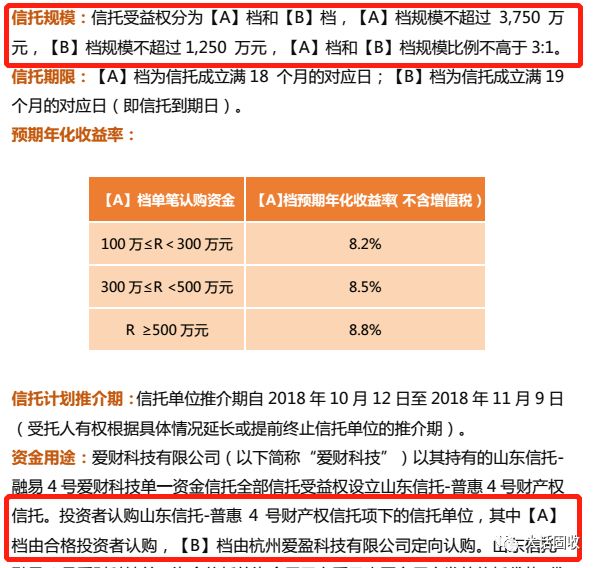 回到普惠4號,該項目設立一個財產權信托募集資金,而這個項目的合作方,正是愛財集團。