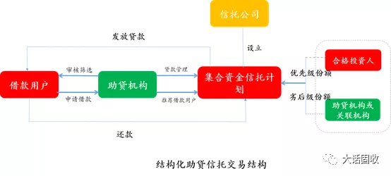 在這種“助貸”模式中,誰能借到錢,借錢做什么,借多少錢這幾個關鍵問題由助貸機構把握;助貸機構審查后推薦給信托計劃放款,回款時也是回流到專門的歸集戶。