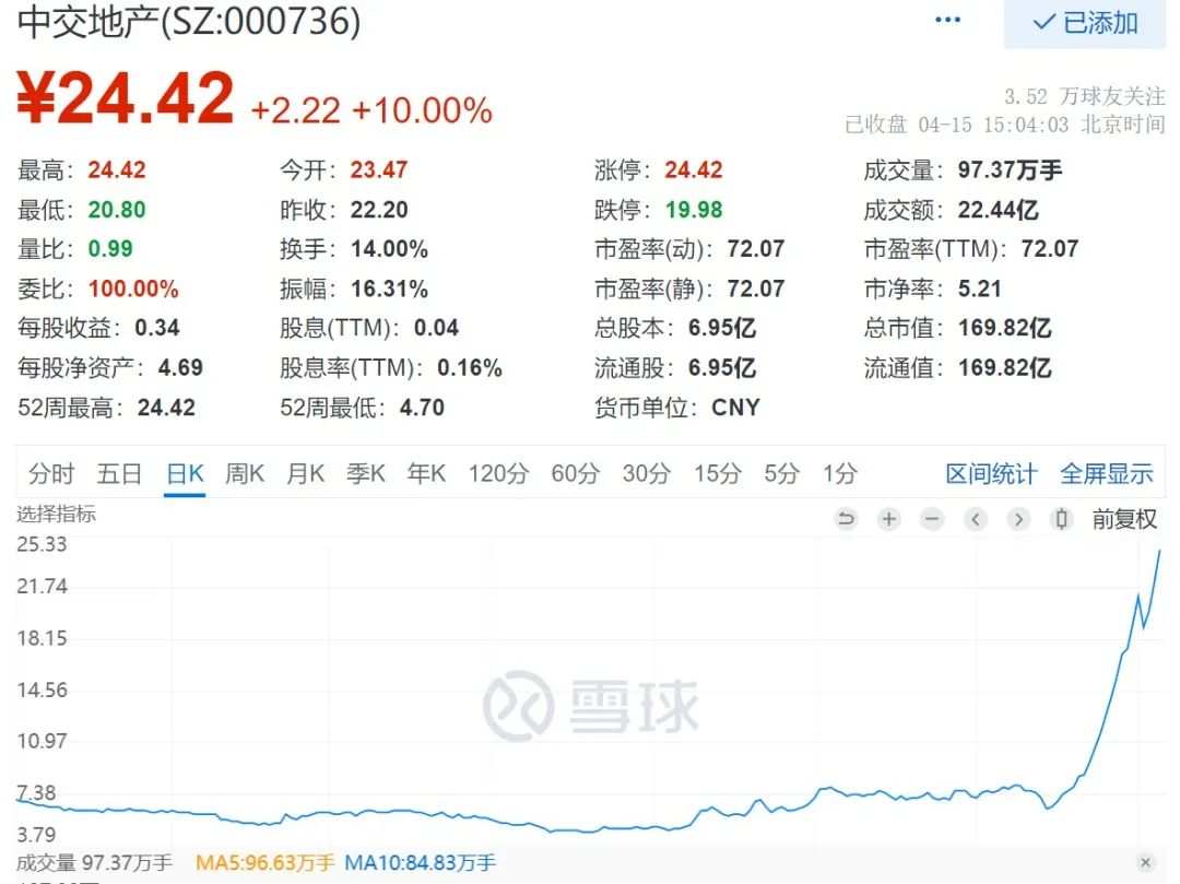 2022地產第一妖股:中交地產12個漲停板后 年報拉響透支預警
