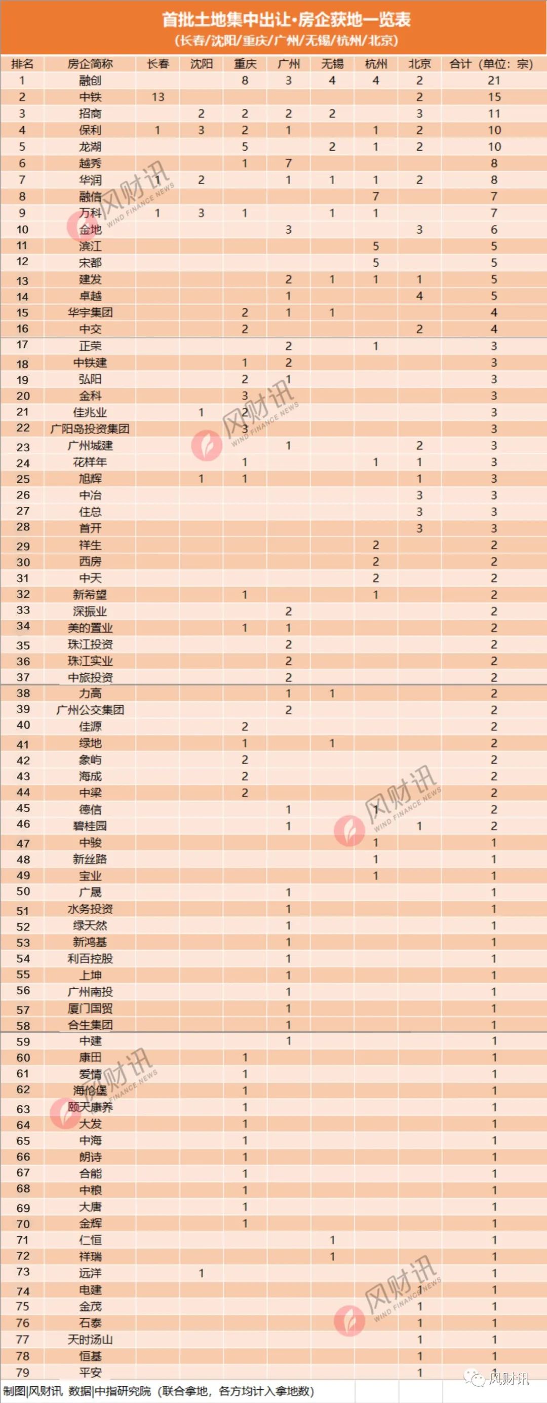 目前為止,首批集中土地出讓獲地的房企,TOP5中,融創(chuàng)、保利非常積極各地撒網,碧桂園、恒大、萬科卻異常低調,幾乎不見蹤影。