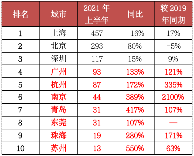 廣州、杭州、南京等多城頂豪市場(chǎng)轉(zhuǎn)暖,2021年上半年總價(jià)3000萬(wàn)元以上頂豪成交明顯放量,同比均實(shí)現(xiàn)翻倍增長(zhǎng)。